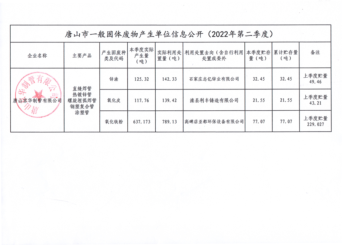 山西行知学堂文化艺术有限公司2022年第二季度固体废物信息公开